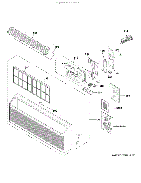 Parts for Ge AZ65H15DACW6: Grille & Control Parts