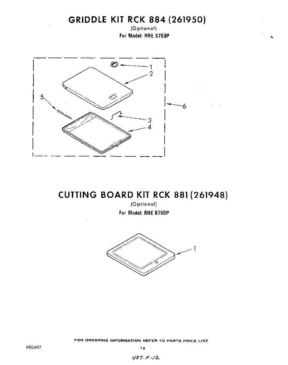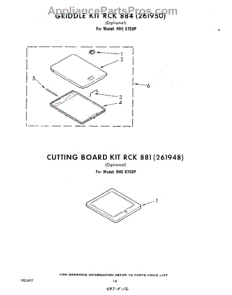 Parts for Whirlpool RHE6760P: 11 - Grille Rck 884 (261950) , Cutting Board Parts
