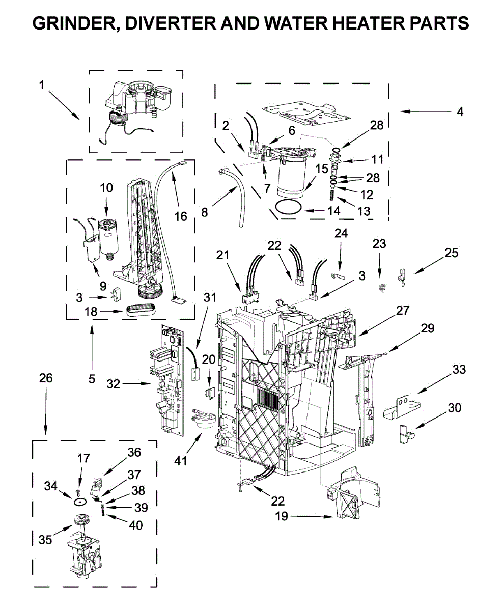 Parts for Jenn-Air JJB6424HL0: Grinder, Diverter And Water Heater Parts