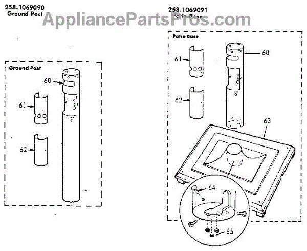 Parts for Craftsman 2581069610: Ground Post And Patio Base Parts