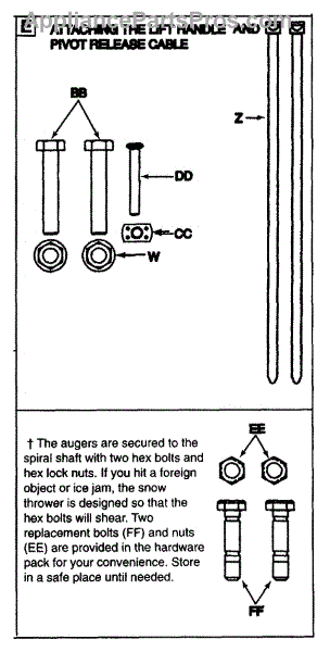 This is a shear bolt, also known as a shear pin, which is used in many models of snowblowers. The shear bolt connects the auger shaft to the auger on the tool. This connection allows the augers to rotate, collecting snow and sending it to the impeller fan. Most snowblowers have at least one shear pin on each side of the auger gearcase. Large objects that get stuck between the housing and augers can damage the pins, necessitating replacement.If there is damage to the shear bolt or if it has broken, the snowblower may not work as expected. To replace the bolt, the snowblower should be turned off. Wear work gloves and remove the spark plug wire before disassembling the snowblower to reach the shear bolt. It can be removed and replaced with a new part.This is a genuine OEM replacement part that is sourced directly from the manufacturer. It is sold as an individual part. The shear bolt is designed for use with snowblowers created by Yard-Man, Yard Machines, MTD, Montgomery Wards, and Huskee.