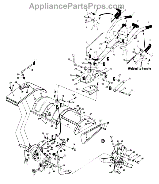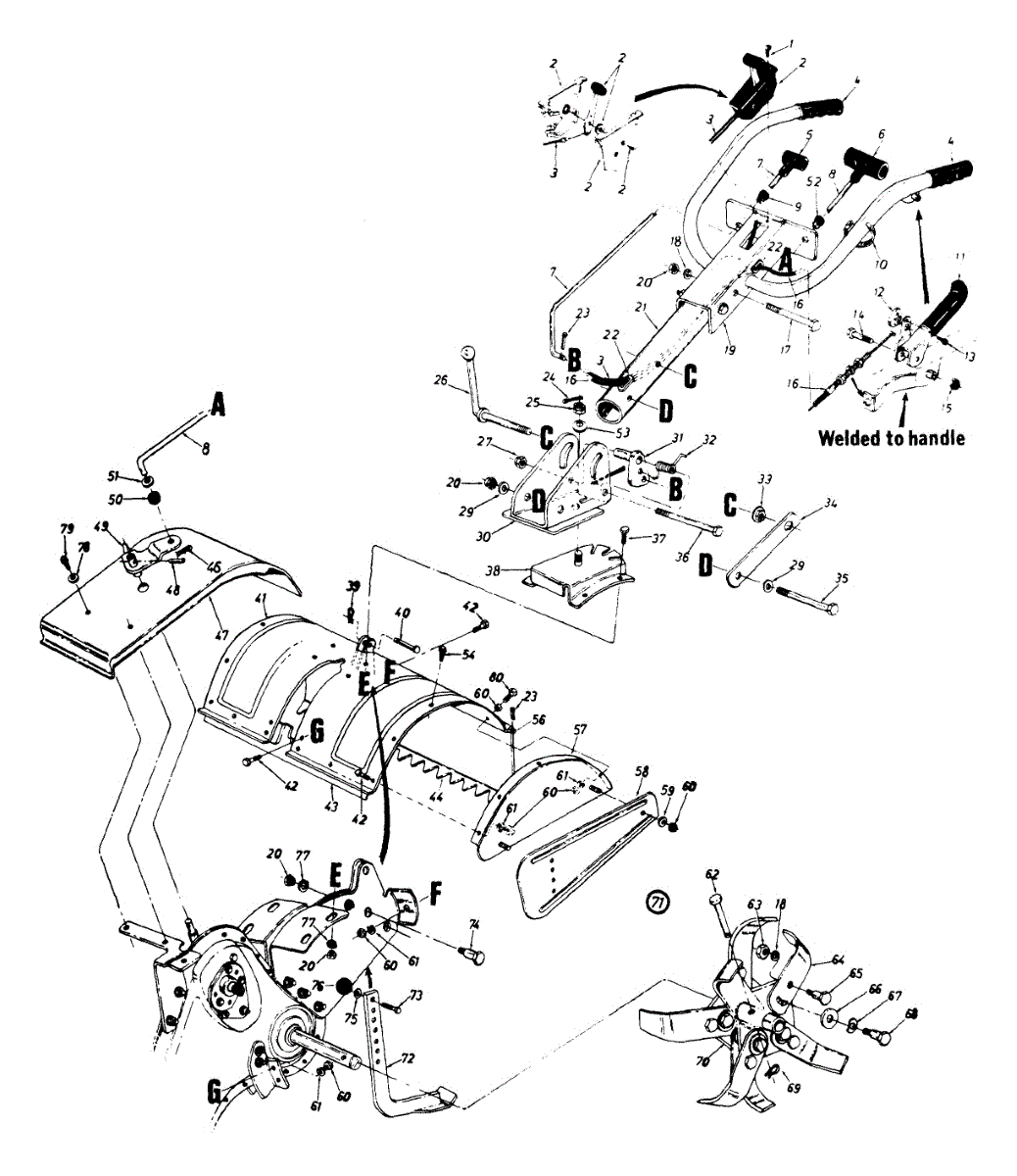 Parts for Mtd 213-430-098 / 1993: Handle And Tine Assembly Parts