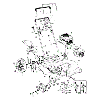 This is the front wheel assembly that is used by a large number of manufactures as the standard wheel for push mowers. This wheel is a tough, black rubber wheel fitted onto a sturdy white chassis. Since it is not a pneumatic wheel, there is no concern that it will roll over hidden debris and be damaged. Push wheels such as these often last the lifetime of a Lawn Mower. However, there are occasions when the housing of the mower is dropped and the wheel becomes warped or broken. It's also the case that, with constant use, the wheels can lose tread, making them harder to maneuver in tough mowing conditions. It has also been reported that the tires will wear and become smaller in circumference over time, meaning it will require more gasoline to mow the same amount of yard. The front wheels are easily replaced. After removing the plug cap and stabilizing the mower, simply use a socket wrench to remove the center bolt from the wheel. It's a good idea to use a dry lubricant like graphite on the axle before replacing it. This OEM guaranteed replacement part is compatible with Ryobi, Yard Machines, Troy-Bilt, Cub Cadet, Husky, Yard-Man, and MTD push mowers.