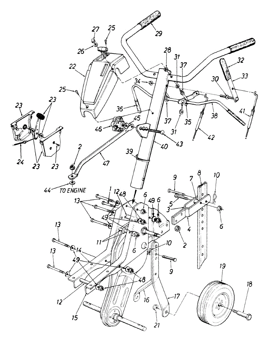 Parts for Mtd 213-390-098 / 1993: Handle And Wheel Assembly Parts