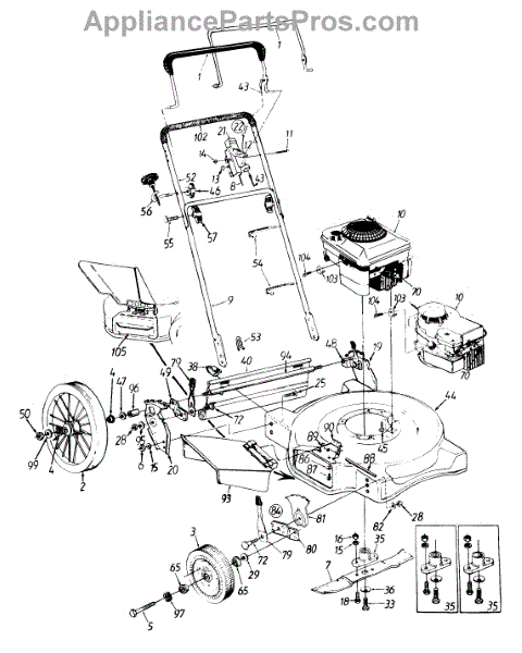 This is the front wheel assembly that is used by a large number of manufactures as the standard wheel for push mowers. This wheel is a tough, black rubber wheel fitted onto a sturdy white chassis. Since it is not a pneumatic wheel, there is no concern that it will roll over hidden debris and be damaged. Push wheels such as these often last the lifetime of a Lawn Mower. However, there are occasions when the housing of the mower is dropped and the wheel becomes warped or broken. It's also the case that, with constant use, the wheels can lose tread, making them harder to maneuver in tough mowing conditions. It has also been reported that the tires will wear and become smaller in circumference over time, meaning it will require more gasoline to mow the same amount of yard. The front wheels are easily replaced. After removing the plug cap and stabilizing the mower, simply use a socket wrench to remove the center bolt from the wheel. It's a good idea to use a dry lubricant like graphite on the axle before replacing it. This OEM guaranteed replacement part is compatible with Ryobi, Yard Machines, Troy-Bilt, Cub Cadet, Husky, Yard-Man, and MTD push mowers.