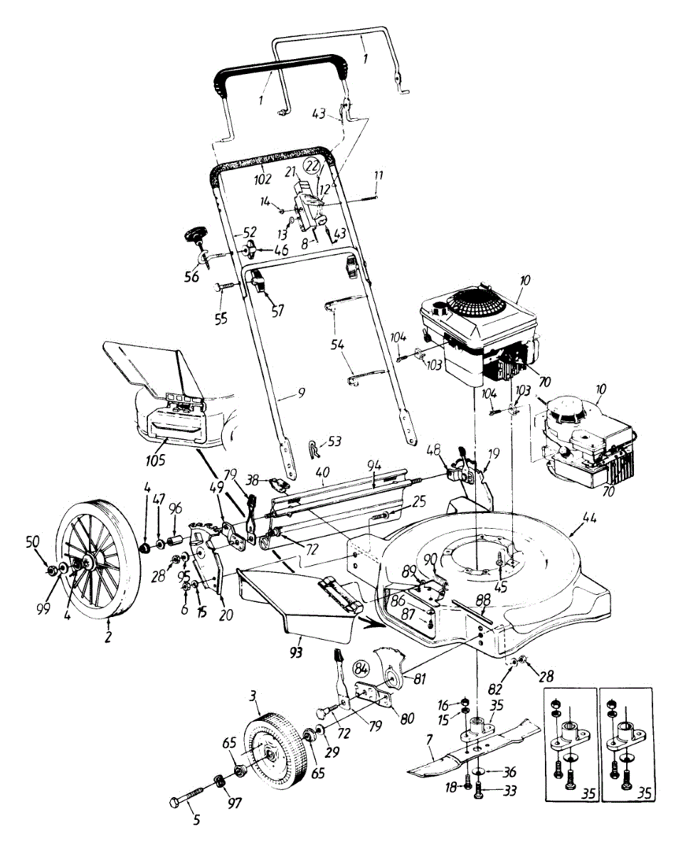 This is the front wheel assembly that is used by a large number of manufactures as the standard wheel for push mowers. This wheel is a tough, black rubber wheel fitted onto a sturdy white chassis. Since it is not a pneumatic wheel, there is no concern that it will roll over hidden debris and be damaged. Push wheels such as these often last the lifetime of a Lawn Mower. However, there are occasions when the housing of the mower is dropped and the wheel becomes warped or broken. It's also the case that, with constant use, the wheels can lose tread, making them harder to maneuver in tough mowing conditions. It has also been reported that the tires will wear and become smaller in circumference over time, meaning it will require more gasoline to mow the same amount of yard. The front wheels are easily replaced. After removing the plug cap and stabilizing the mower, simply use a socket wrench to remove the center bolt from the wheel. It's a good idea to use a dry lubricant like graphite on the axle before replacing it. This OEM guaranteed replacement part is compatible with Ryobi, Yard Machines, Troy-Bilt, Cub Cadet, Husky, Yard-Man, and MTD push mowers.