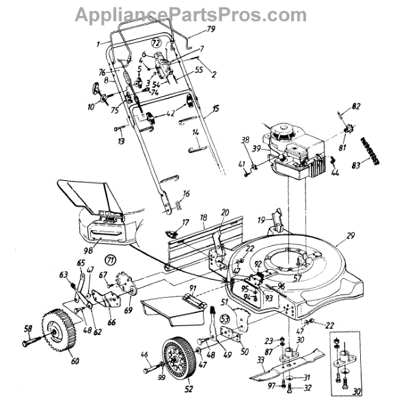 This is the front wheel assembly that is used by a large number of manufactures as the standard wheel for push mowers. This wheel is a tough, black rubber wheel fitted onto a sturdy white chassis. Since it is not a pneumatic wheel, there is no concern that it will roll over hidden debris and be damaged. Push wheels such as these often last the lifetime of a Lawn Mower. However, there are occasions when the housing of the mower is dropped and the wheel becomes warped or broken. It's also the case that, with constant use, the wheels can lose tread, making them harder to maneuver in tough mowing conditions. It has also been reported that the tires will wear and become smaller in circumference over time, meaning it will require more gasoline to mow the same amount of yard. The front wheels are easily replaced. After removing the plug cap and stabilizing the mower, simply use a socket wrench to remove the center bolt from the wheel. It's a good idea to use a dry lubricant like graphite on the axle before replacing it. This OEM guaranteed replacement part is compatible with Ryobi, Yard Machines, Troy-Bilt, Cub Cadet, Husky, Yard-Man, and MTD push mowers.
