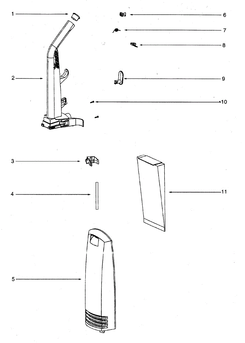 Parts for Eureka 2901A: Handle Assy / Bag Assy Parts
