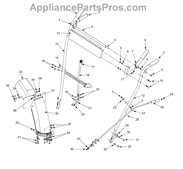 Parts for Yard Machines 31A-611D062 / 2001: Handle Assembly & Chute Parts