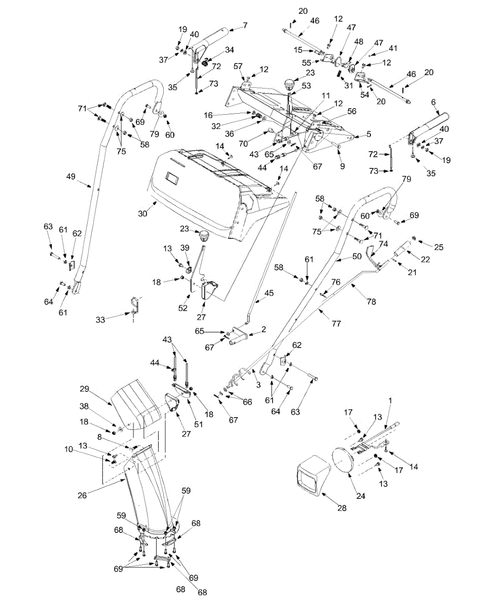 Handle support bracket for snow blowers. Secures and stabilizes the upper handle assembly. Replace if bracket is bent, cracked, or broken.