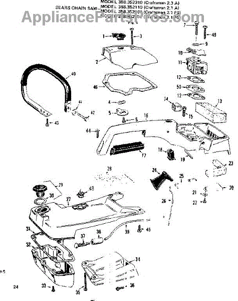 Parts for Craftsman 358352151: Handle Assembly Parts