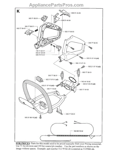 Parts for Husqvarna 225H75: Handle Assembly Parts