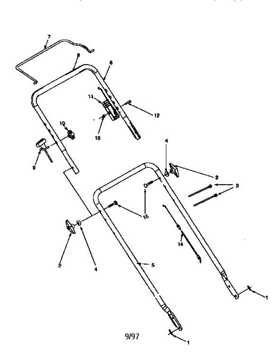 Star knob connects upper and lower handles on lawn mowers and outdoor equipment. Replace if threading is worn, cracked, or knob is missing for secure assembly.