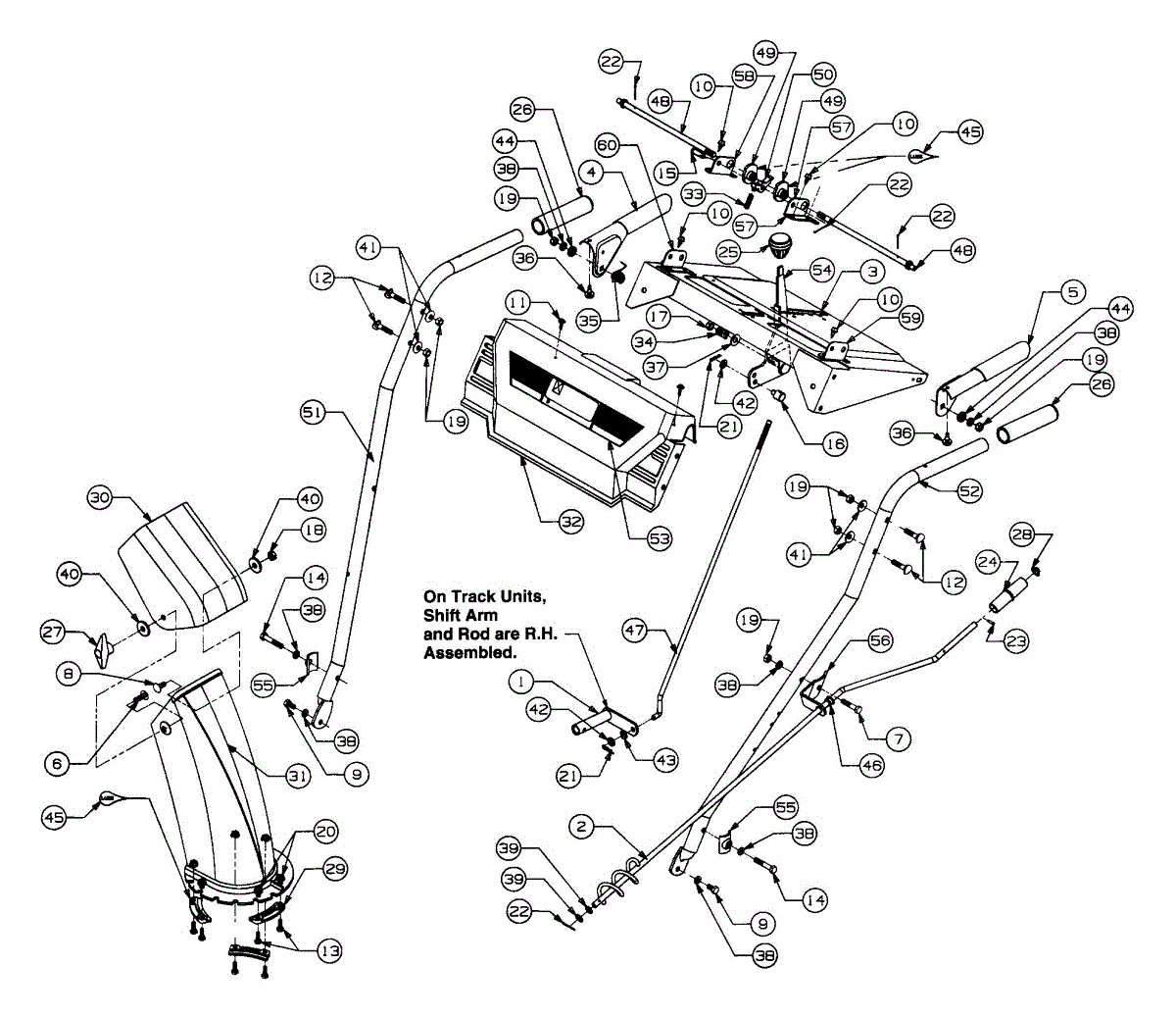 Handle support bracket for snow blowers. Secures and stabilizes the upper handle assembly. Replace if bracket is bent, cracked, or broken.