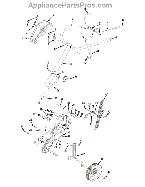 This replacement part is a bracket wheel assembly intended for use in lawn mowers. This is a genuine replacement part made by MTD. This part is used to assist the wheels of a lawn mower so that they stay secure and in place while the appliance is in use.A new bracket wheel assembly might be needed if the current one is damaged or broken in any way. If the user notices that the wheels are not attached properly or the machine is moving in directions other than what is being prompted, the part might need to be replaced. Be sure the appliance is completely powered down and cooled off before attempting to replace this part. For more detailed instructions on how to replace this specific part, please reference the user guide or manual for the appliance. This is an OEM part sourced directly from the manufacturer. It is sold individually. This replacement part is compatible with lawn mowers made by MTD.