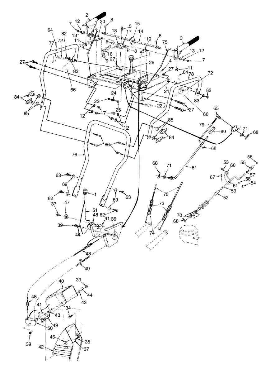 Handle support bracket for snow blowers. Secures and stabilizes the upper handle assembly. Replace if bracket is bent, cracked, or broken.