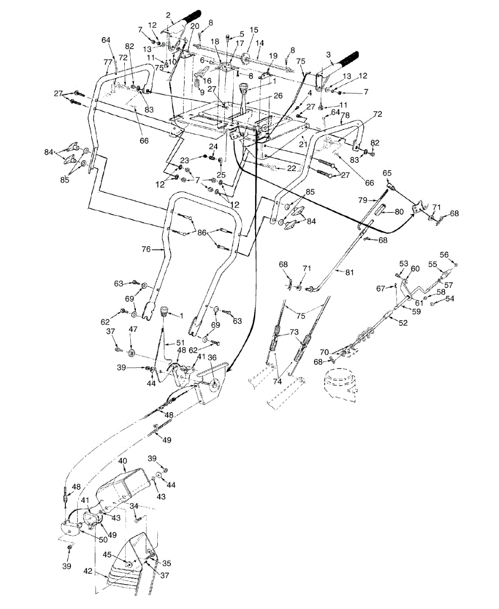 Handle support bracket for snow blowers. Secures and stabilizes the upper handle assembly. Replace if bracket is bent, cracked, or broken.