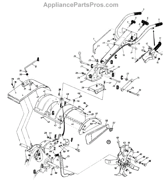 Replacement debris guard flap for rear-tine tillers. Shields operator from flying rocks and soil. Replace if torn, cracked, bent, or missing.