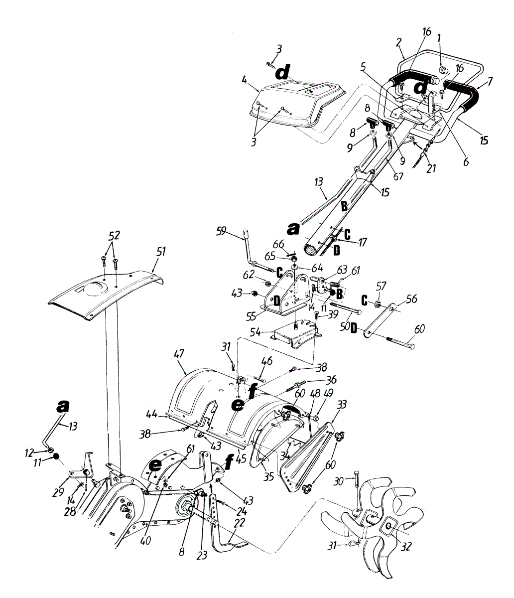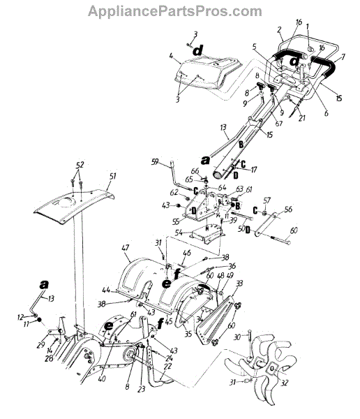 Protective shield that covers the tines on your tiller. Replace if cracked, broken, or missing to prevent debris from flying up during operation.