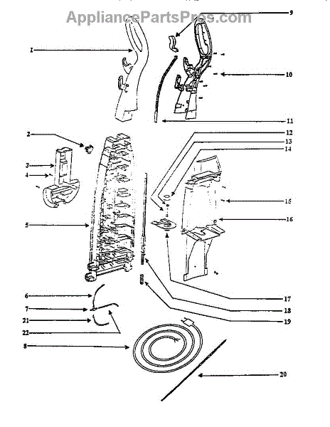 Parts for Eureka 2450DT: Handle And Bag Housing Parts
