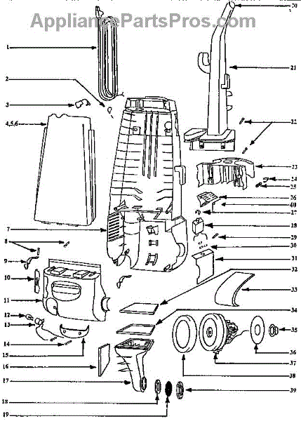 Parts for Eureka 4351BT: Handle And Bag Housing Parts