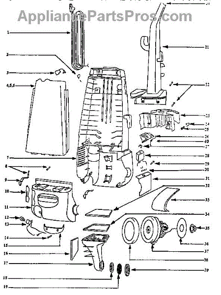 Parts for Eureka 4460BT: Handle And Bag Housing Parts