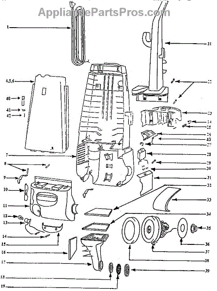 Parts for Eureka 4465DT: Handle And Bag Housing Parts