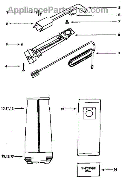 Parts for Eureka 9615D/DT: Handle And Bag Housing Parts