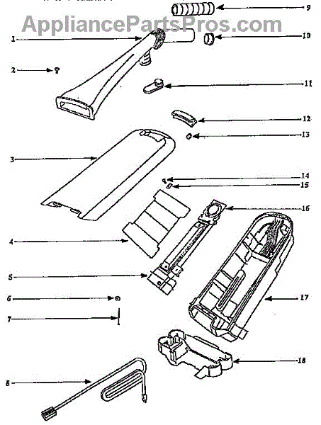 Parts for Eureka 9720A/AT: Handle And Bag Housing Parts