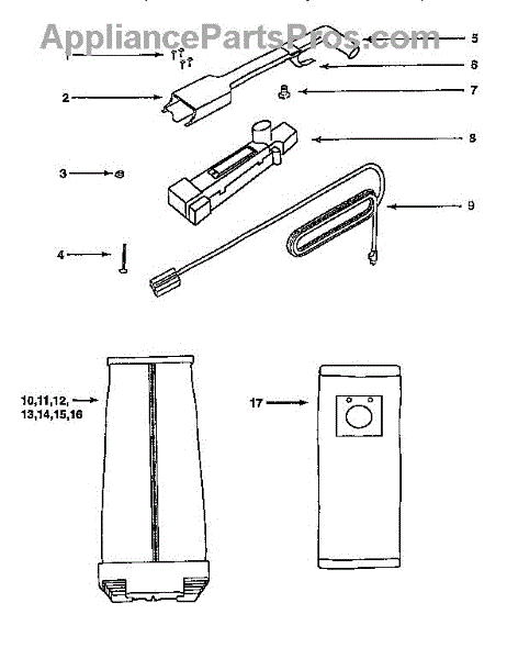 Parts for Eureka 9834DTH: Handle And Bag Housing Parts
