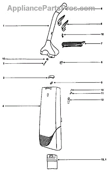 Parts for Eureka SC6484DT: Handle And Bag Housing Parts