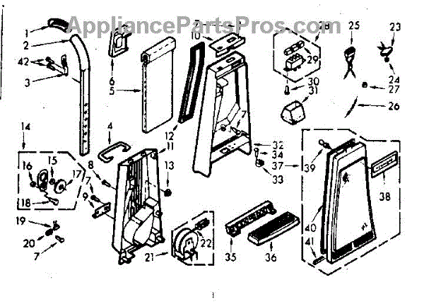 Parts for Kenmore 116.30970 (11630970, 116 30970): Handle And Bag Housing Parts