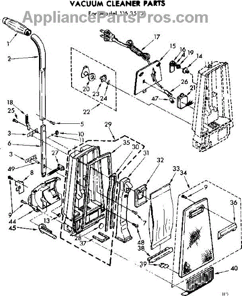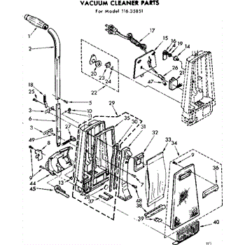 Parts for Kenmore 116.35851 (11635851, 116 35851): Handle And Bag Housing Parts