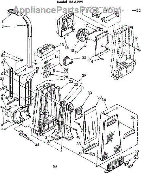 Parts for Kenmore 116.35991 (11635991, 116 35991): Handle And Bag Housing Parts