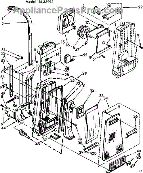 Parts for Kenmore 116.35992 (11635992, 116 35992): Handle And Bag Housing Parts