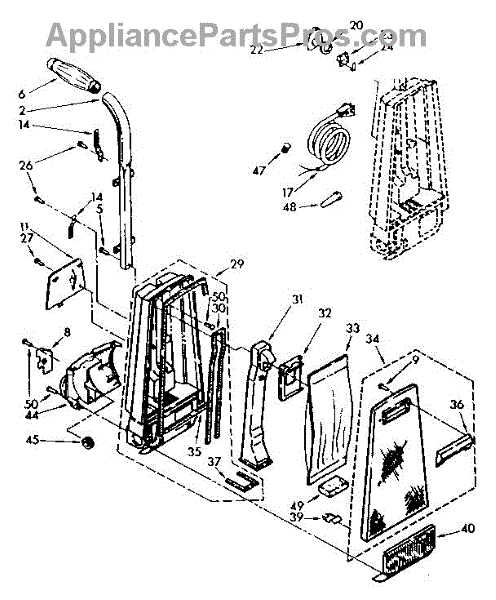 Parts for Kenmore 116.38810 (11638810, 116 38810): Handle And Bag Housing Parts