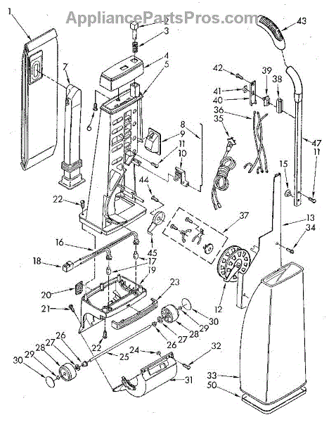 Parts for Kenmore 116.3937280 (1163937280, 116 3937280): Handle And Bag Housing Parts