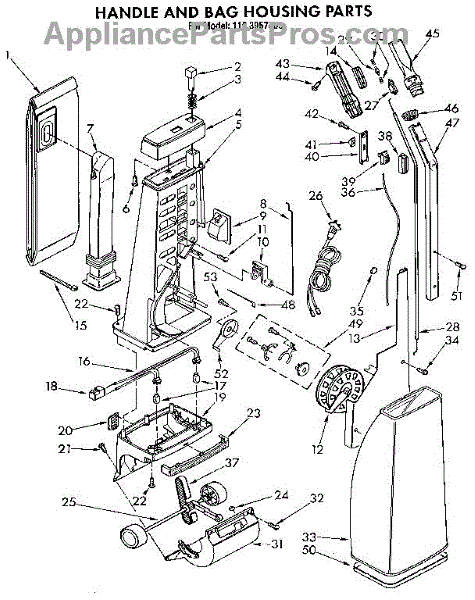 Parts for Kenmore 116.3957583 (1163957583, 116 3957583): Handle And Bag Housing Parts