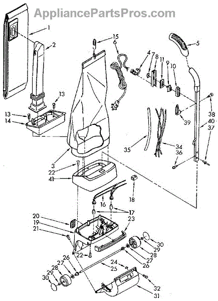 Parts for Kenmore 116.3966182 (1163966182, 116 3966182): Handle And Bag Housing Parts