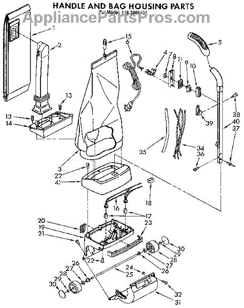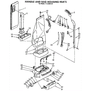 Parts for Kenmore 116.3966184 (1163966184, 116 3966184): Handle And Bag Housing Parts