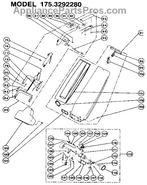 Parts for Kenmore 175.3292280 (1753292280, 175 3292280): Handle And Bag Housing Parts