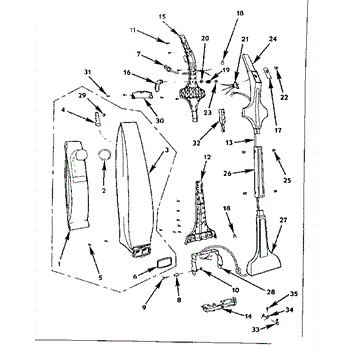 Parts for Kenmore 175.3594180 (1753594180, 175 3594180): Handle And Bag Housing Parts