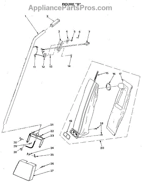 Parts for Kenmore 175.3917280 (1753917280, 175 3917280): Handle And Bag Housing Parts