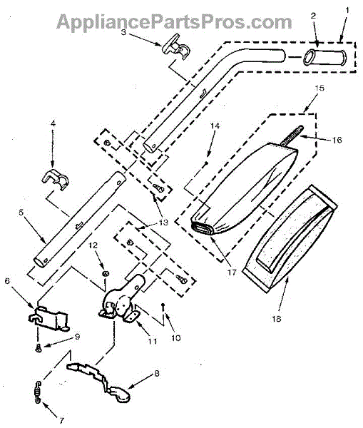 Parts for Kenmore 860.39855 (86039855, 860 39855): Handle And Bag Housing Parts