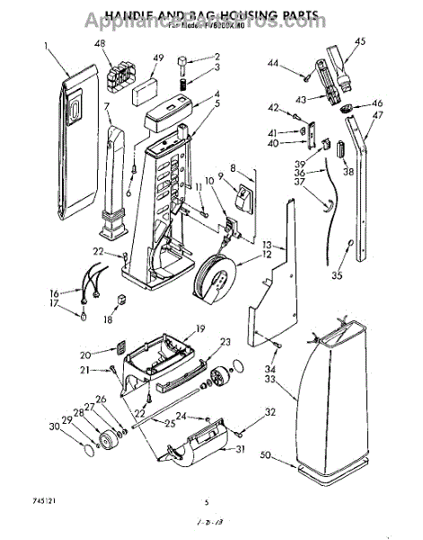 This screw is used to secure the handle end cap to the center of the door. The screw size measures 8-18 x 1/2 inches.