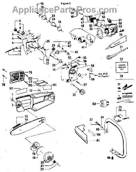 Parts for Craftsman 358355160: Handle / Chain And Guide Bar Assembly Parts