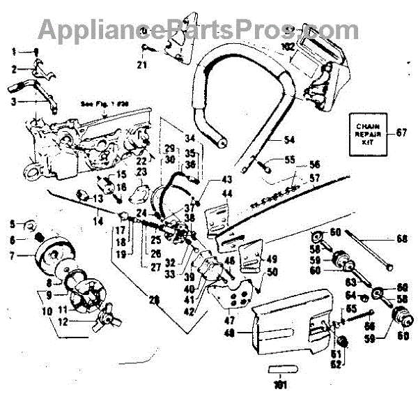 Parts for Craftsman 358356081: Handle / Chain And Guide Bar Assembly Parts
