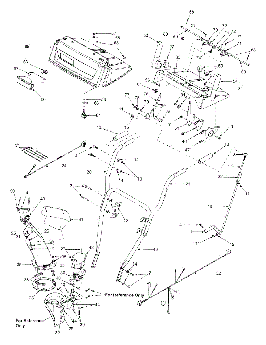 Upper wire harness assembly for snow blowers. Connects and routes electrical wiring in the upper section. Replace if wires are damaged, frayed, or connectors broken.