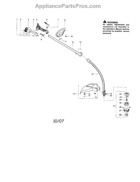 The lower shaft replacement is used for lawn and garden equipment such as trimmers, gas trimmers, and pruners. The shaft is the part that will hold the spool used on these types of equipment. It also connects to the upper shaft.Some of the common problems with the lower drive shaft include worn drive shaft ends, worn bushing, breaks along the metal, or damage to the outer tube. Owners should replace the lower shaft before they use the machine. Continuing to use a trimmer with a broken lower shaft is dangerous and could result in injury or more damage to the machine. The replacement of the lower shaft is relatively simple and will require only a few tools.The replacement part works with certain models of trimmer and pruner from Husqvarna, Weed Eater, and Poulan. This is a genuine OEM replacement part sourced from the manufacturer. The kit is sold individually.