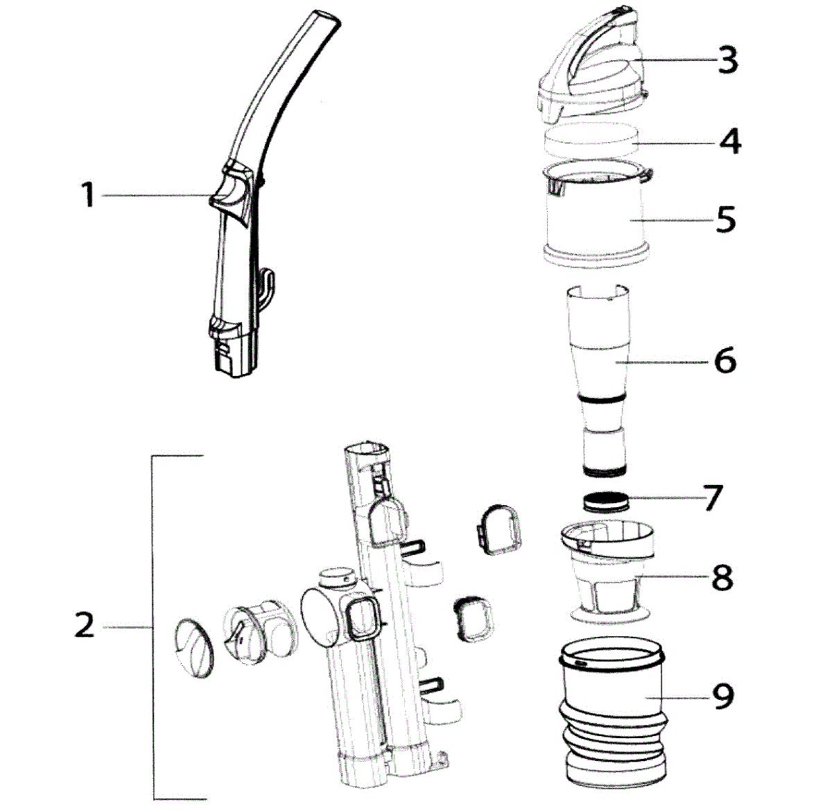 Parts for Eureka AS2013A: Handle & Dust Cup Parts